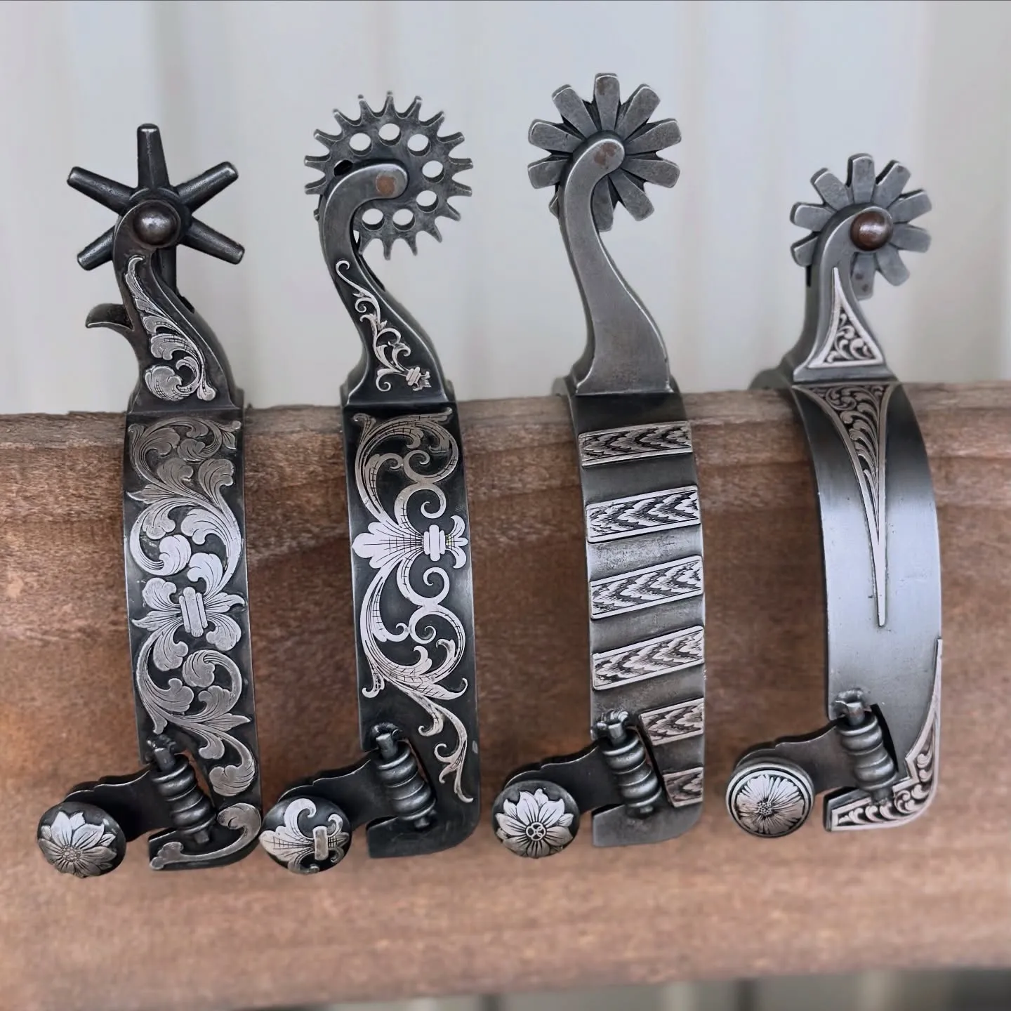 Yes. We accept custom commissions for riders seeking specific shank lengths, rowel styles, engraving patterns, or silver overlay configurations. Contact us directly to discuss your requirements and timeline.